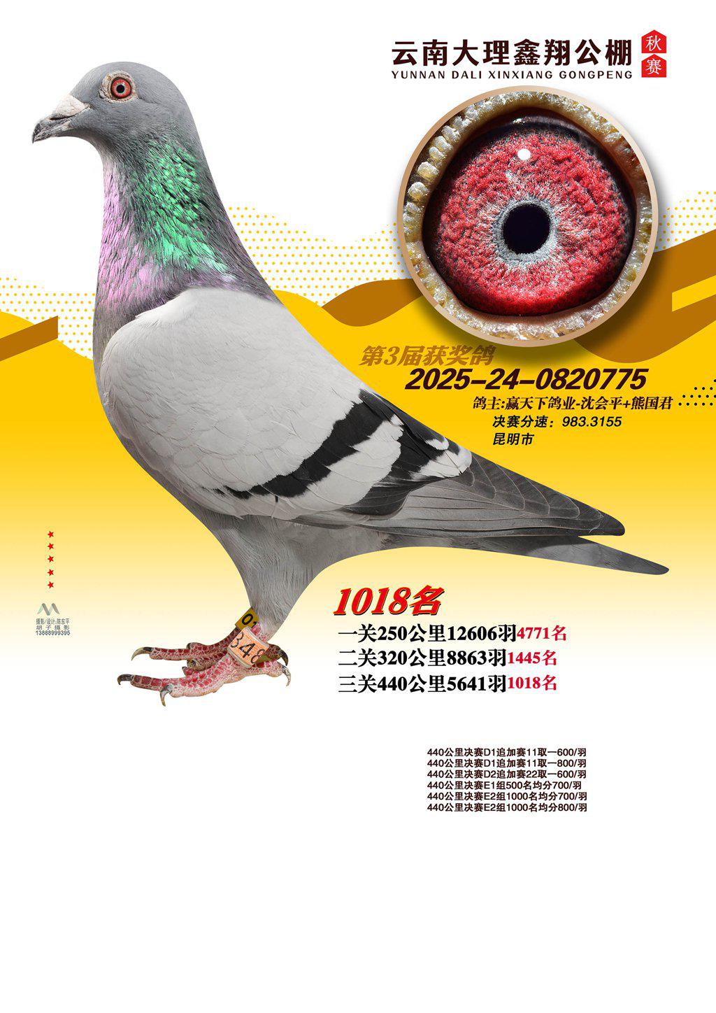 位置:云南大理鑫翔公棚2025获奖鸽展示\1018名