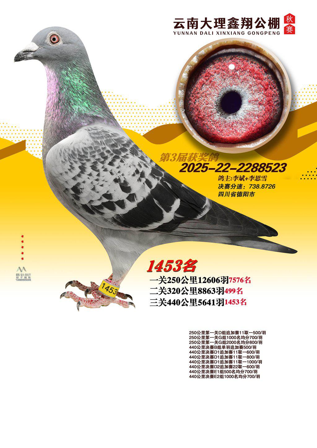 位置:云南大理鑫翔公棚2025获奖鸽展示\1453名