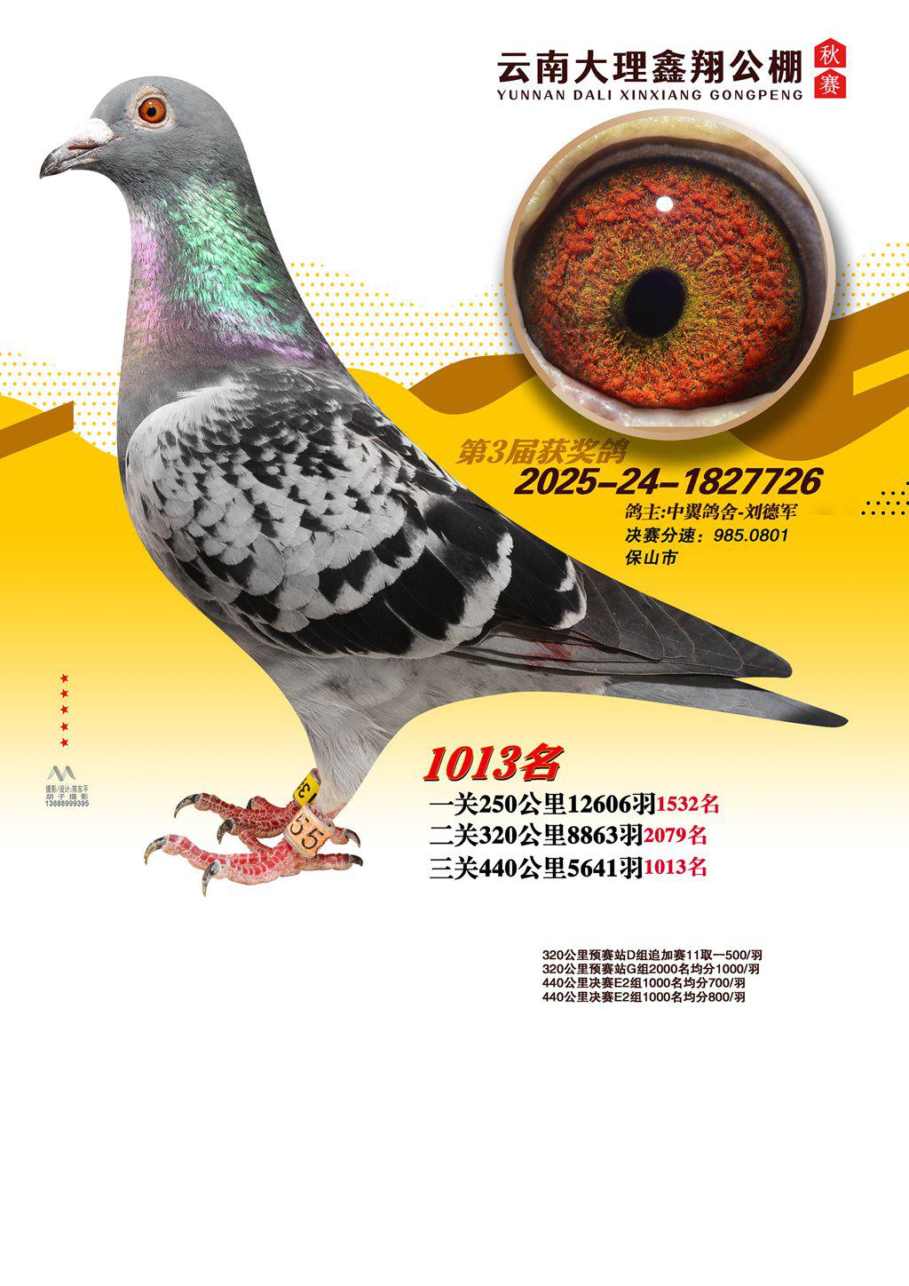 位置:云南大理鑫翔公棚2025获奖鸽展示\1013名