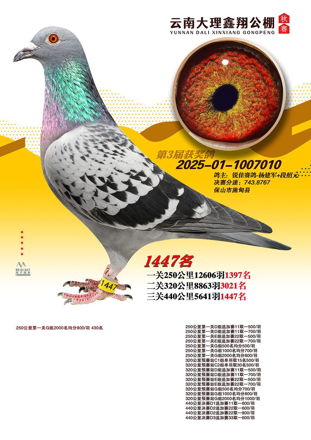 位置:云南大理鑫翔公棚2025获奖鸽展示\1447名