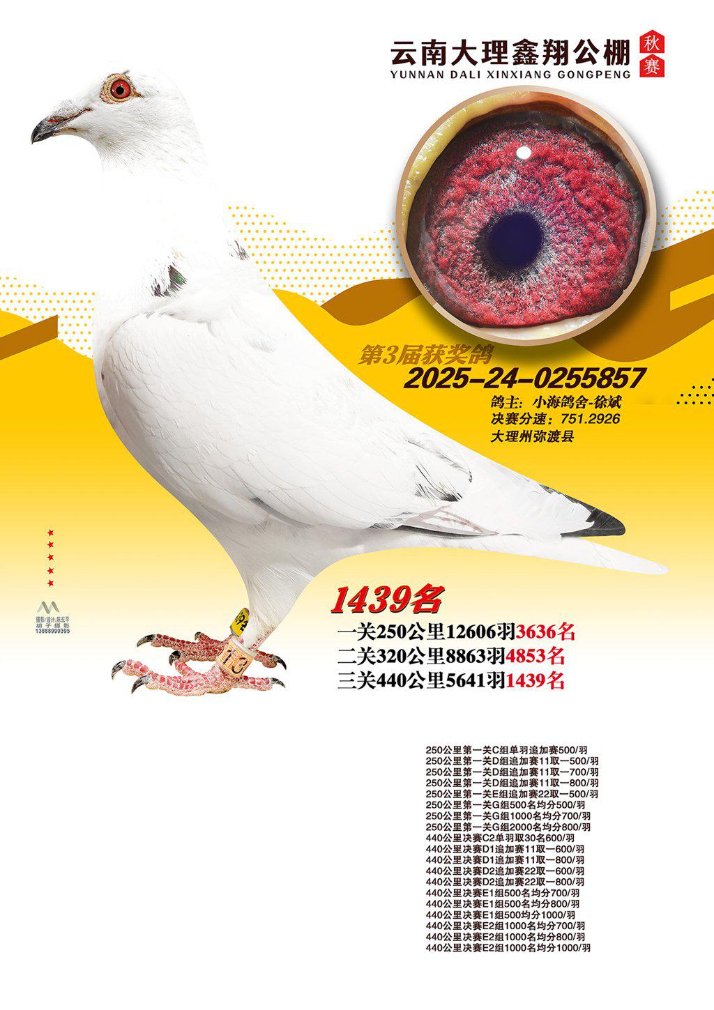 位置:云南大理鑫翔公棚2025获奖鸽展示\1439名
