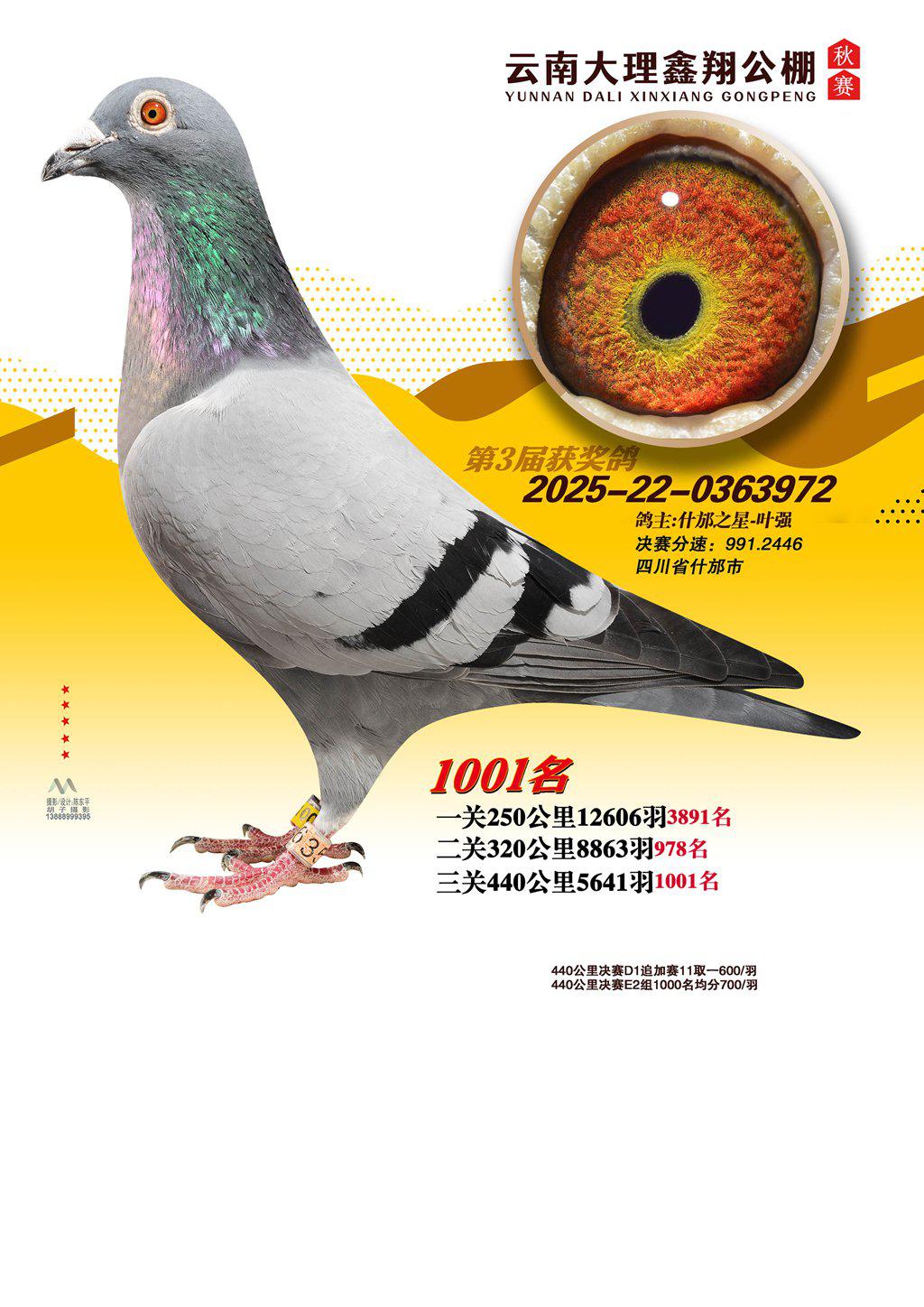 位置:云南大理鑫翔公棚2025获奖鸽展示\1001名