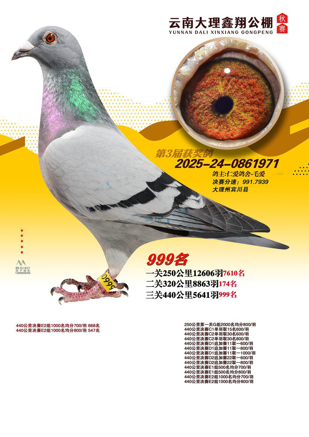 位置:云南大理鑫翔公棚2025获奖鸽展示\999名