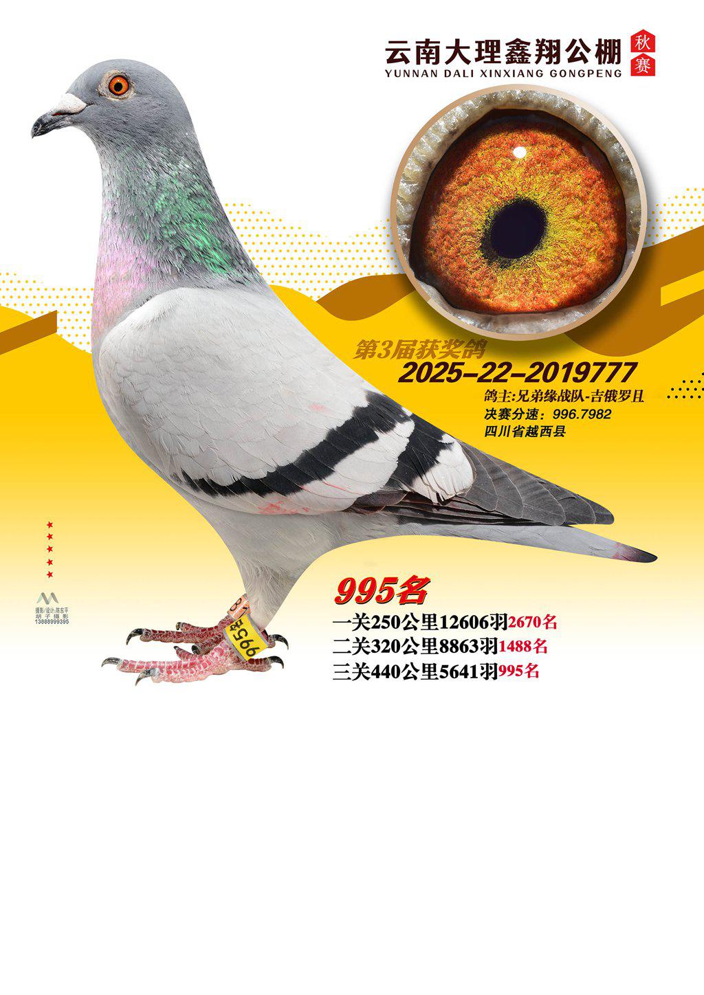 位置:云南大理鑫翔公棚2025获奖鸽展示\995名