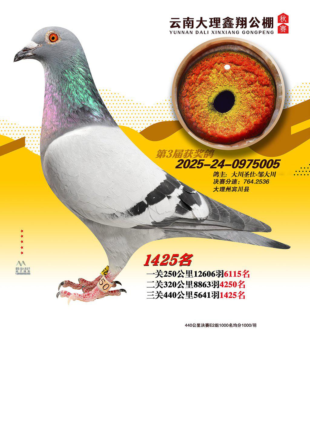 位置:云南大理鑫翔公棚2025获奖鸽展示\1425名