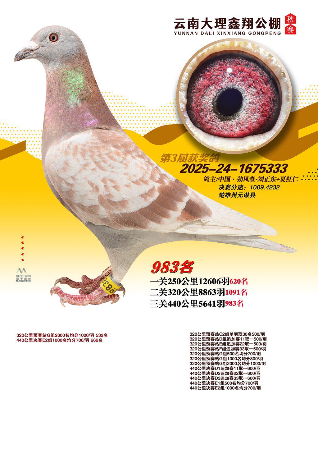 位置:云南大理鑫翔公棚2025获奖鸽展示\983名