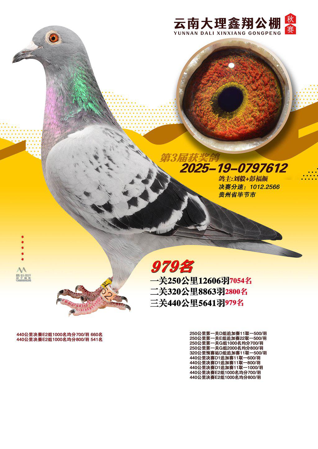 位置:云南大理鑫翔公棚2025获奖鸽展示\979名