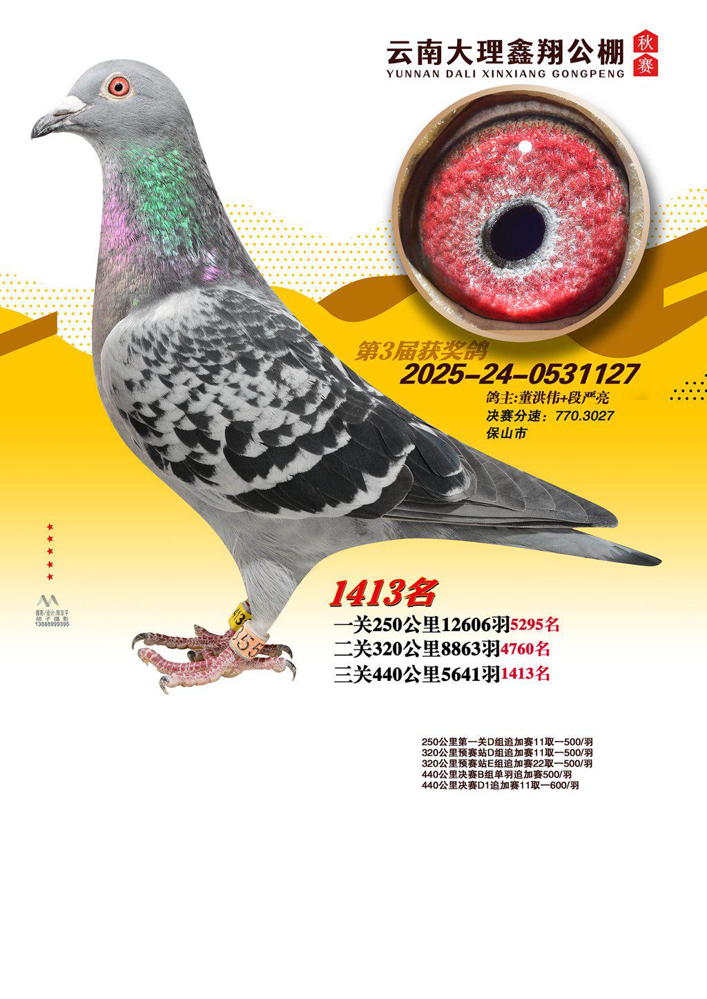 位置:云南大理鑫翔公棚2025获奖鸽展示\1413名