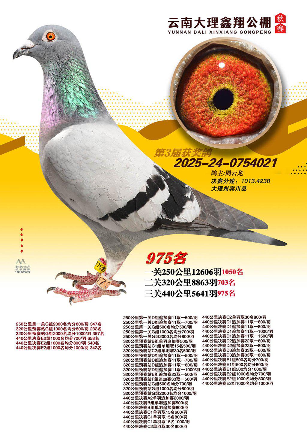 位置:云南大理鑫翔公棚2025获奖鸽展示\975名