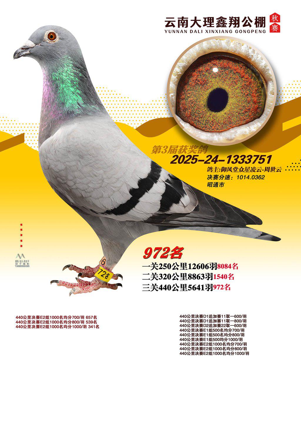 位置:云南大理鑫翔公棚2025获奖鸽展示\972名