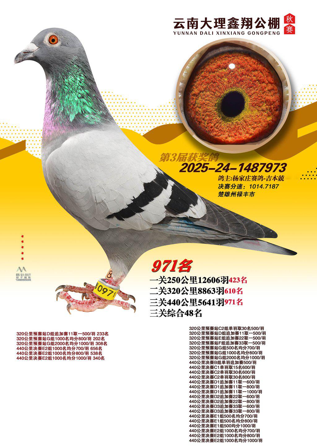 位置:云南大理鑫翔公棚2025获奖鸽展示\971名