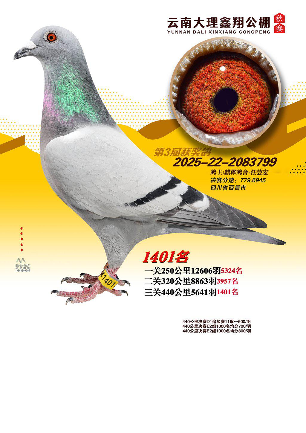 位置:云南大理鑫翔公棚2025获奖鸽展示\1401名