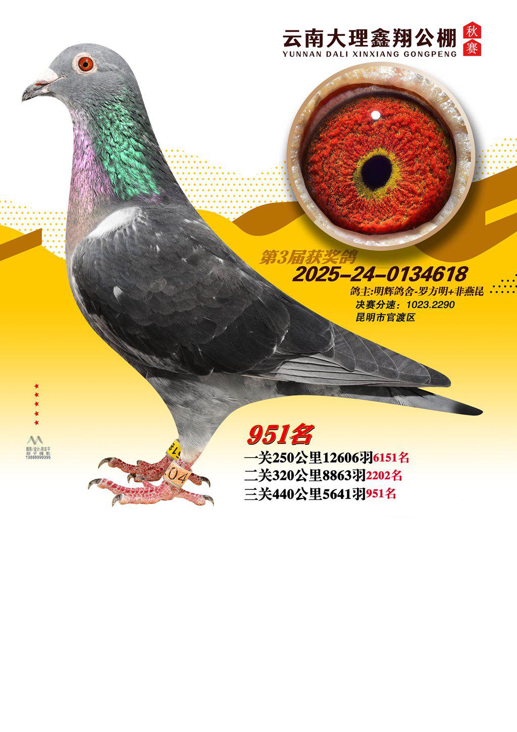 位置:云南大理鑫翔公棚2025获奖鸽展示\951名