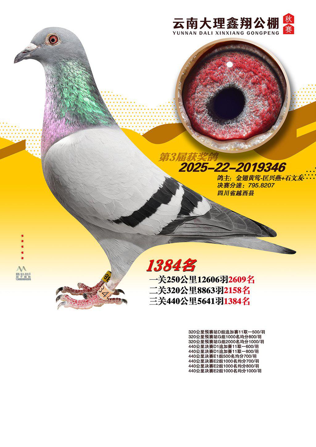 位置:云南大理鑫翔公棚2025获奖鸽展示\1384名