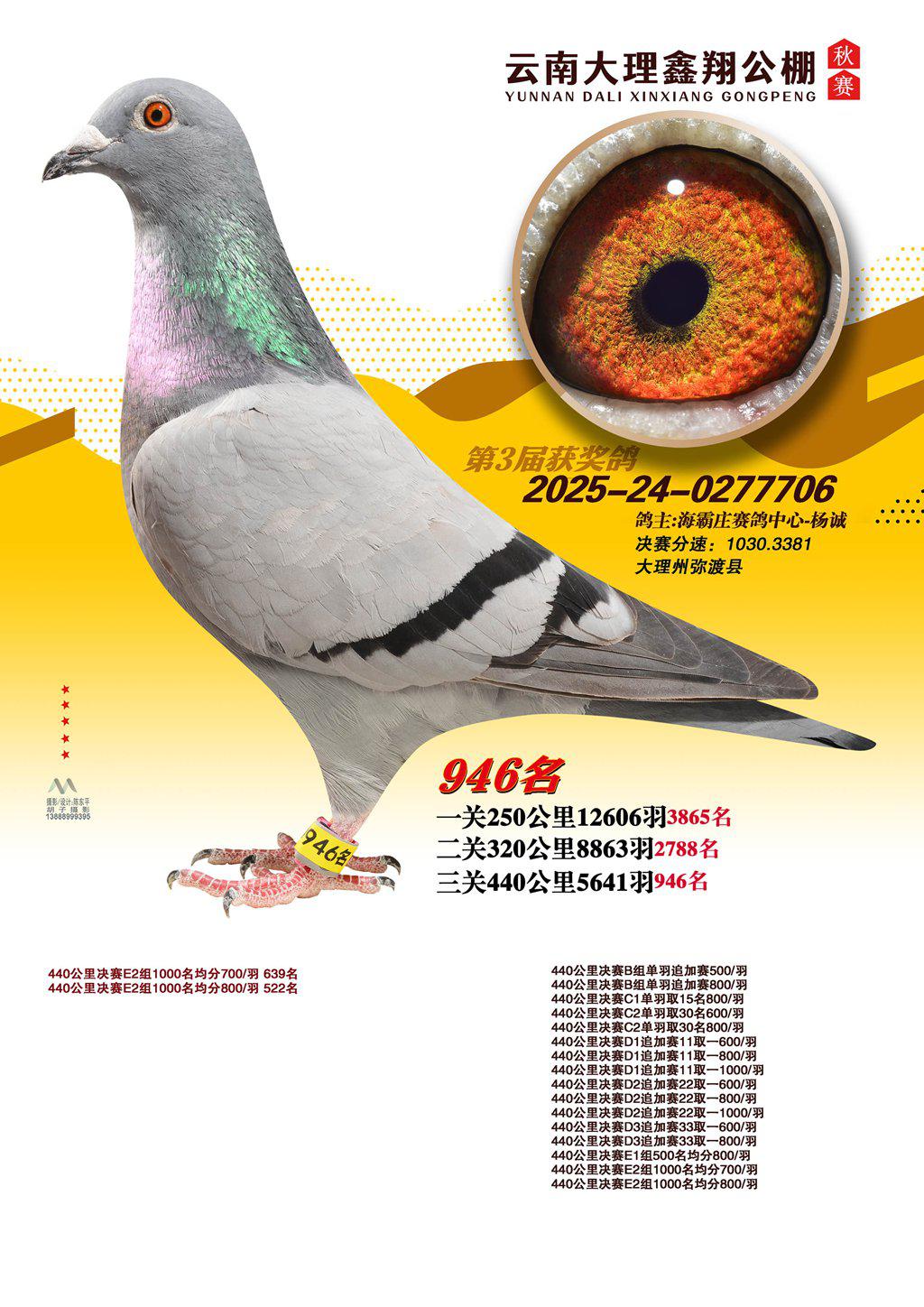 位置:云南大理鑫翔公棚2025获奖鸽展示\946名