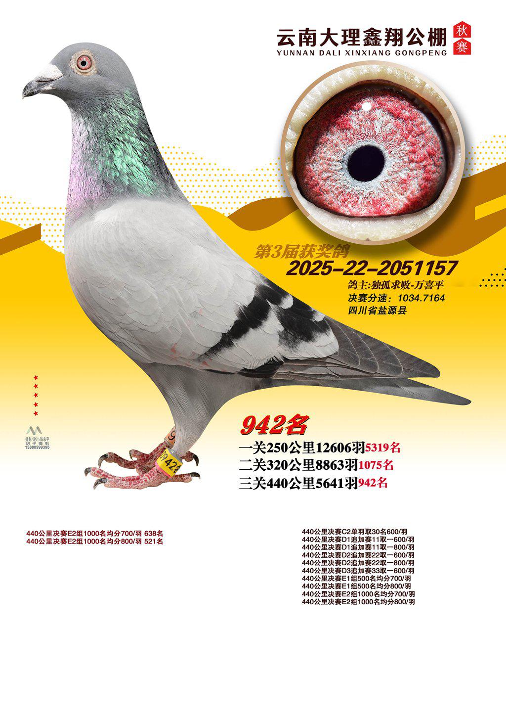 位置:云南大理鑫翔公棚2025获奖鸽展示\942名