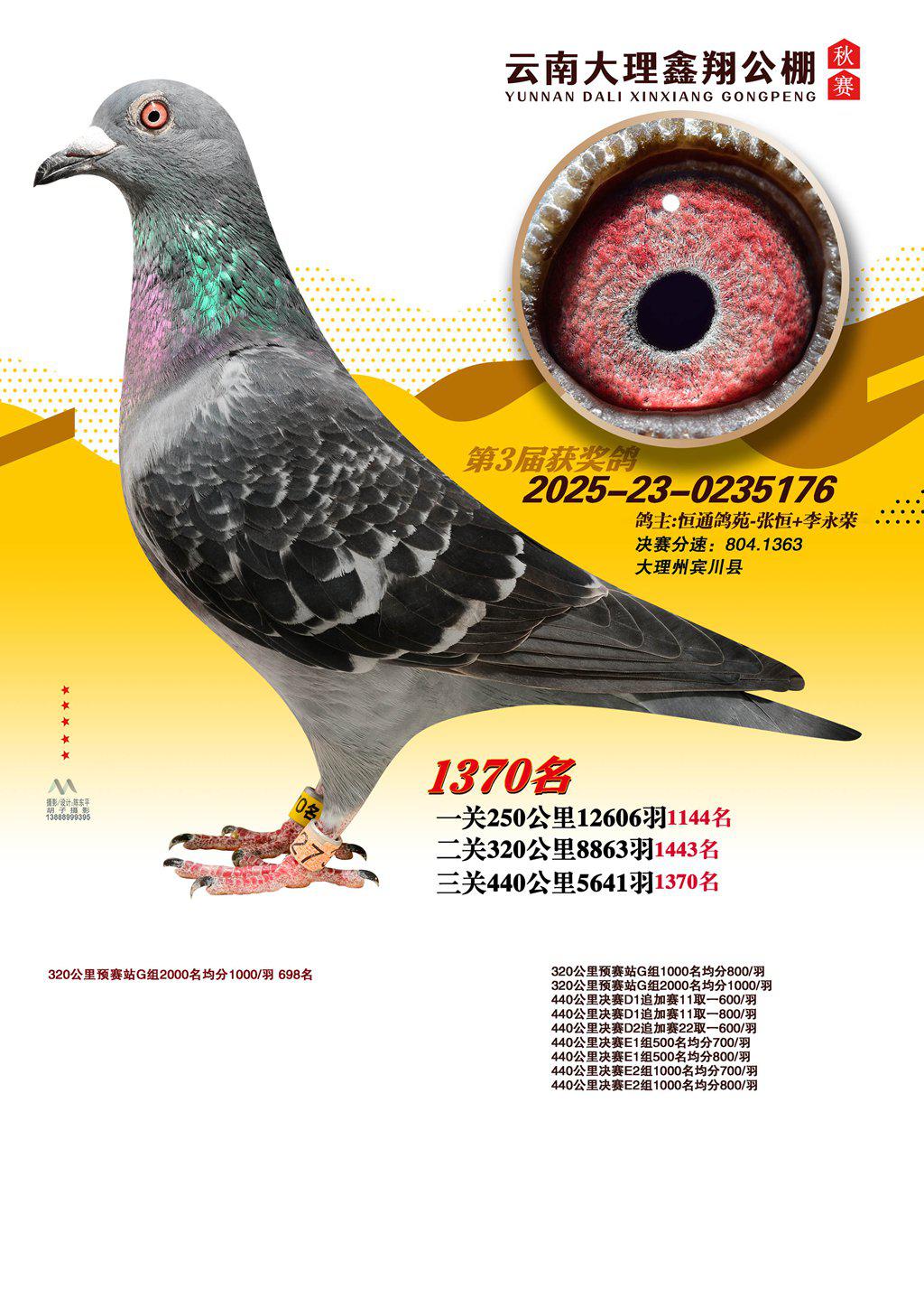 位置:云南大理鑫翔公棚2025获奖鸽展示\1370名