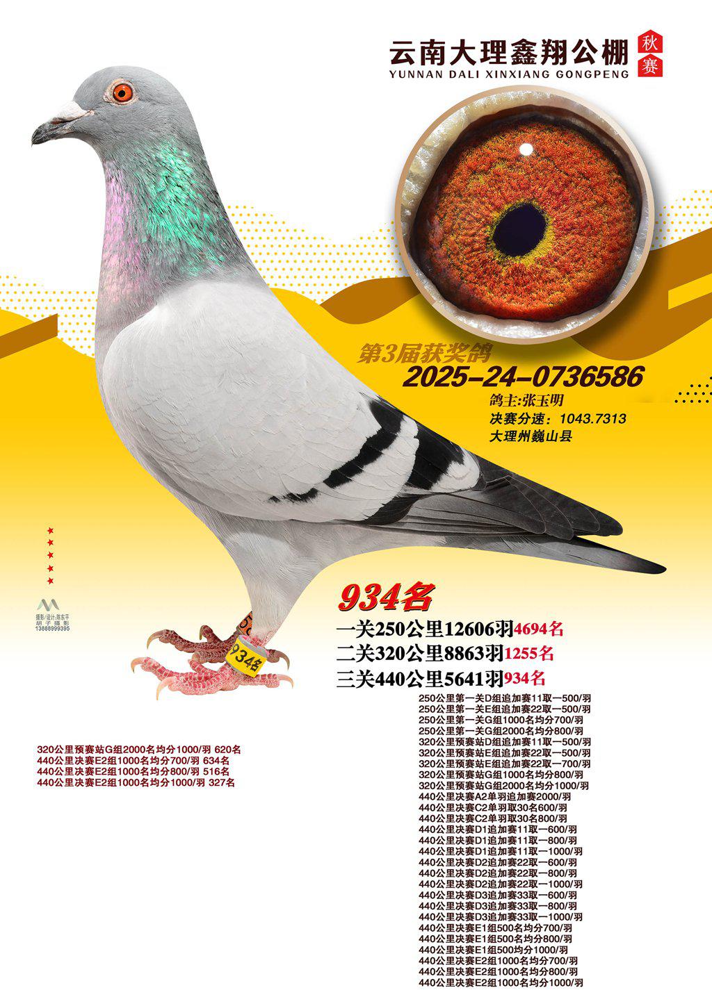 位置:云南大理鑫翔公棚2025获奖鸽展示\934名
