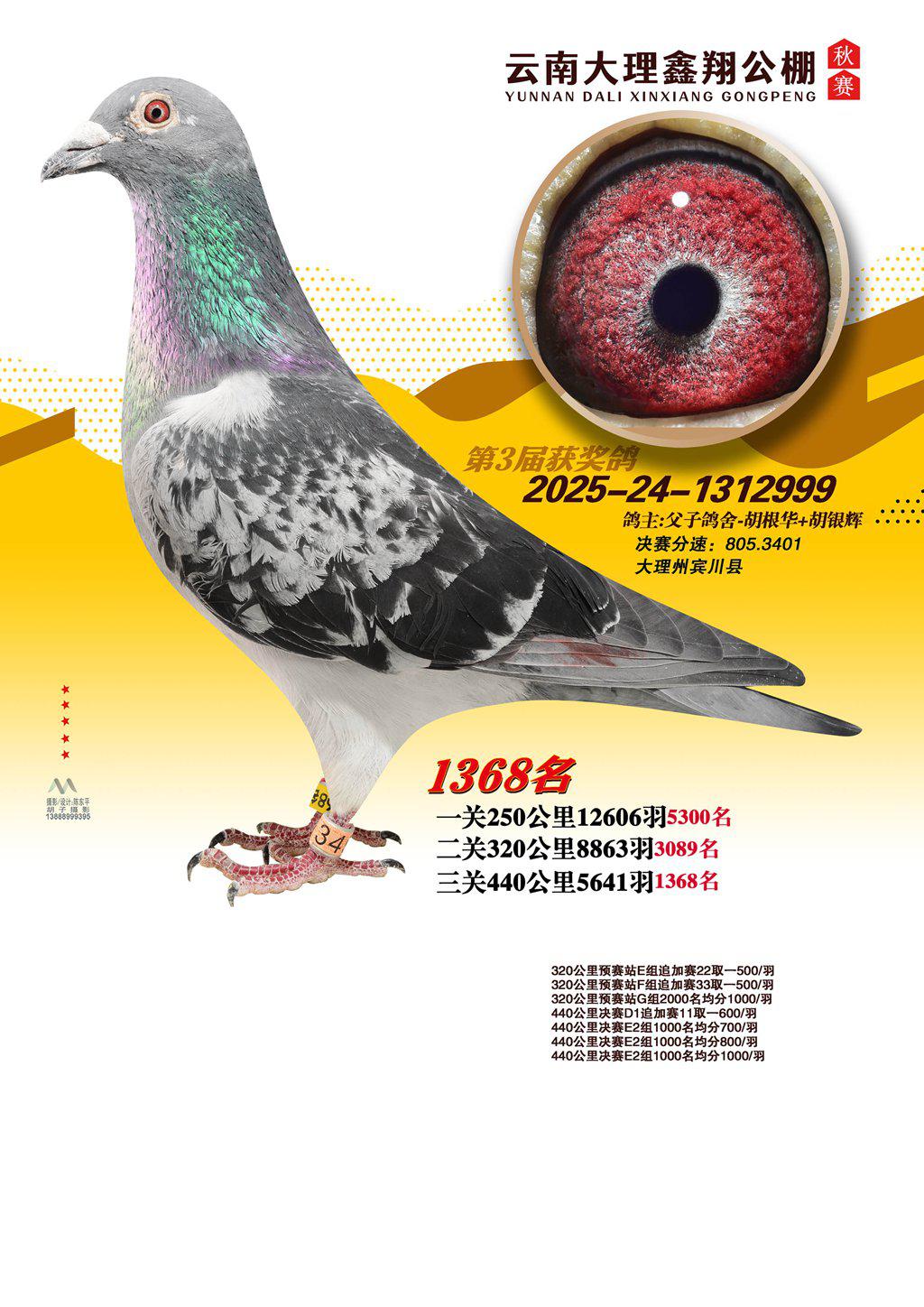 位置:云南大理鑫翔公棚2025获奖鸽展示\1368名
