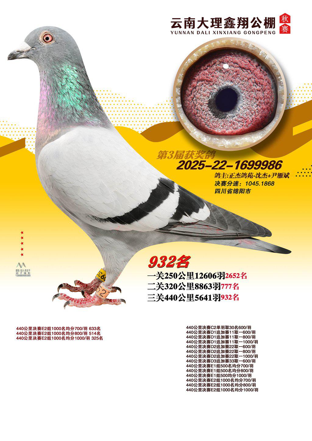位置:云南大理鑫翔公棚2025获奖鸽展示\932名