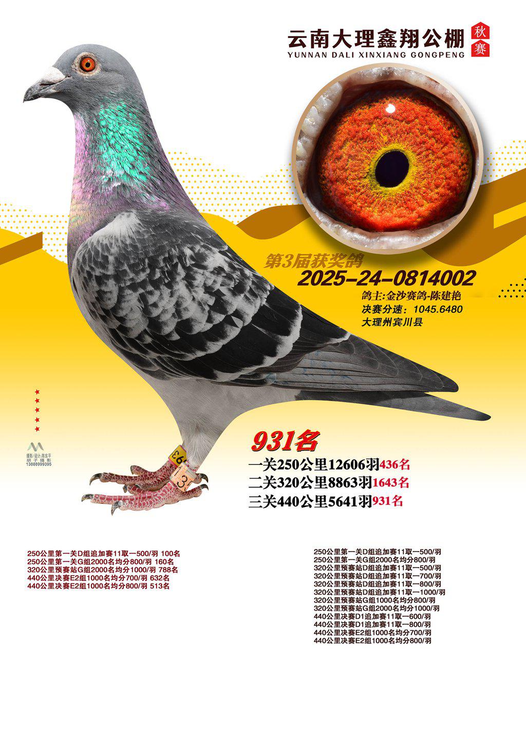 位置:云南大理鑫翔公棚2025获奖鸽展示\931名