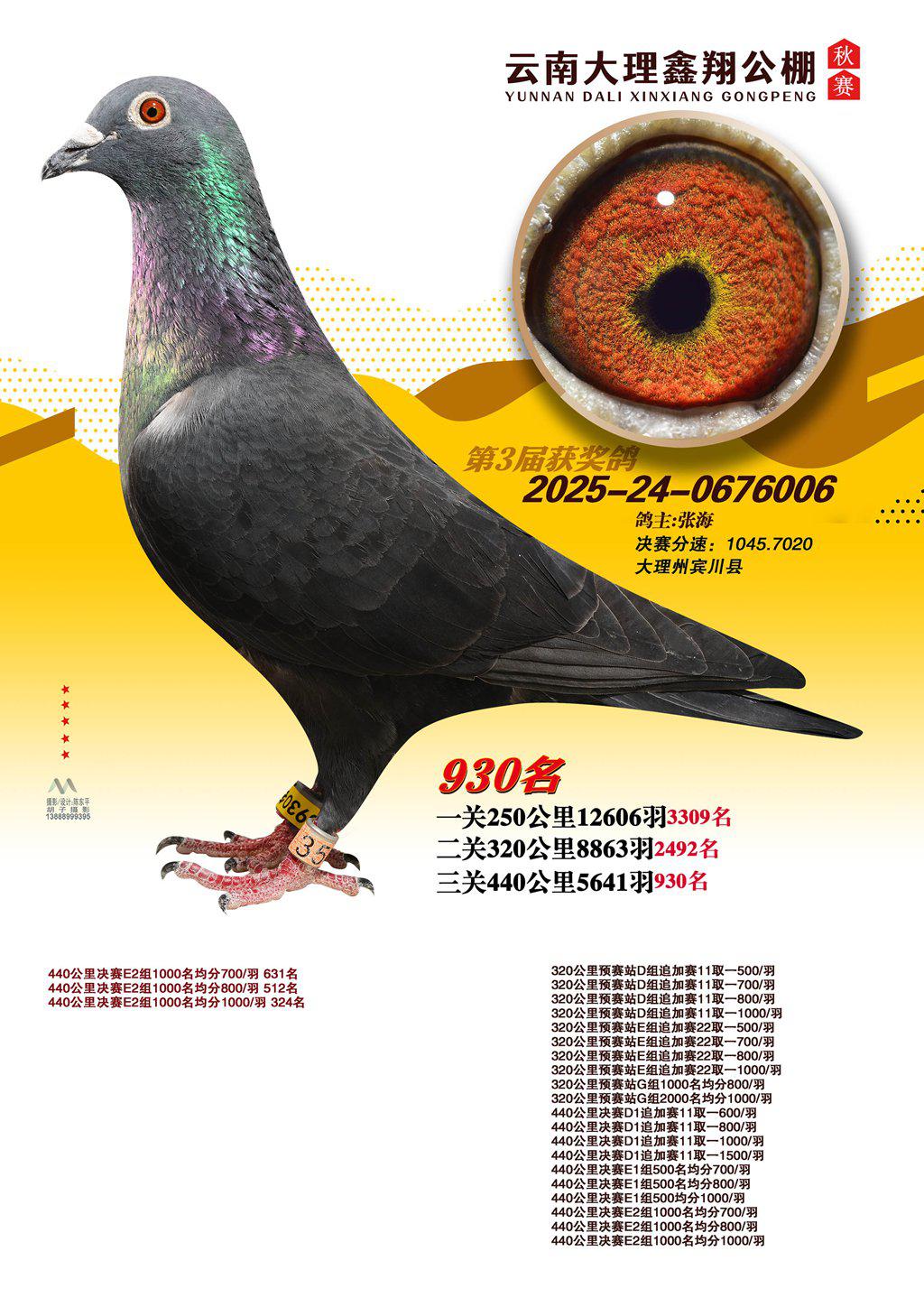 位置:云南大理鑫翔公棚2025获奖鸽展示\930名