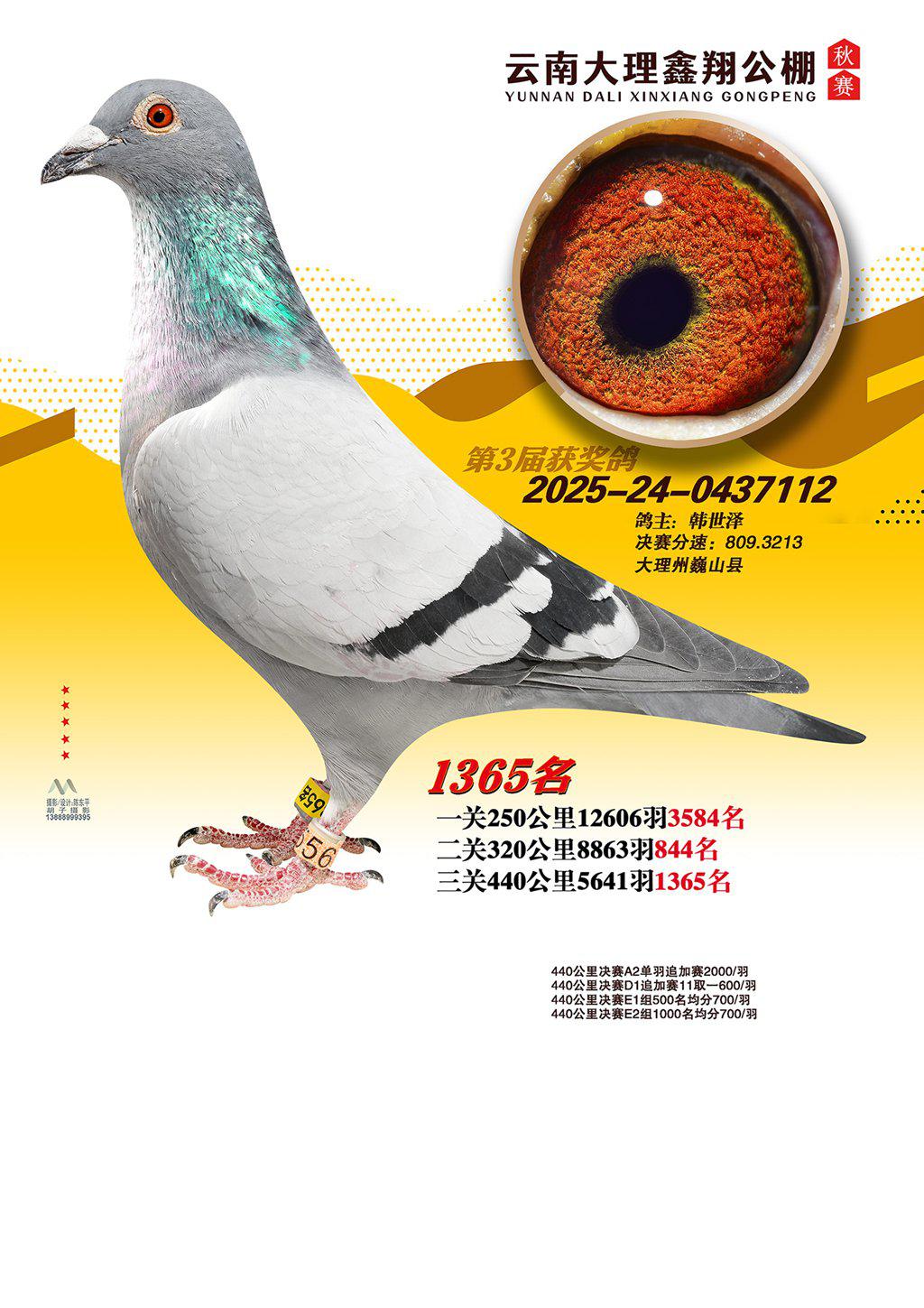 位置:云南大理鑫翔公棚2025获奖鸽展示\1365名