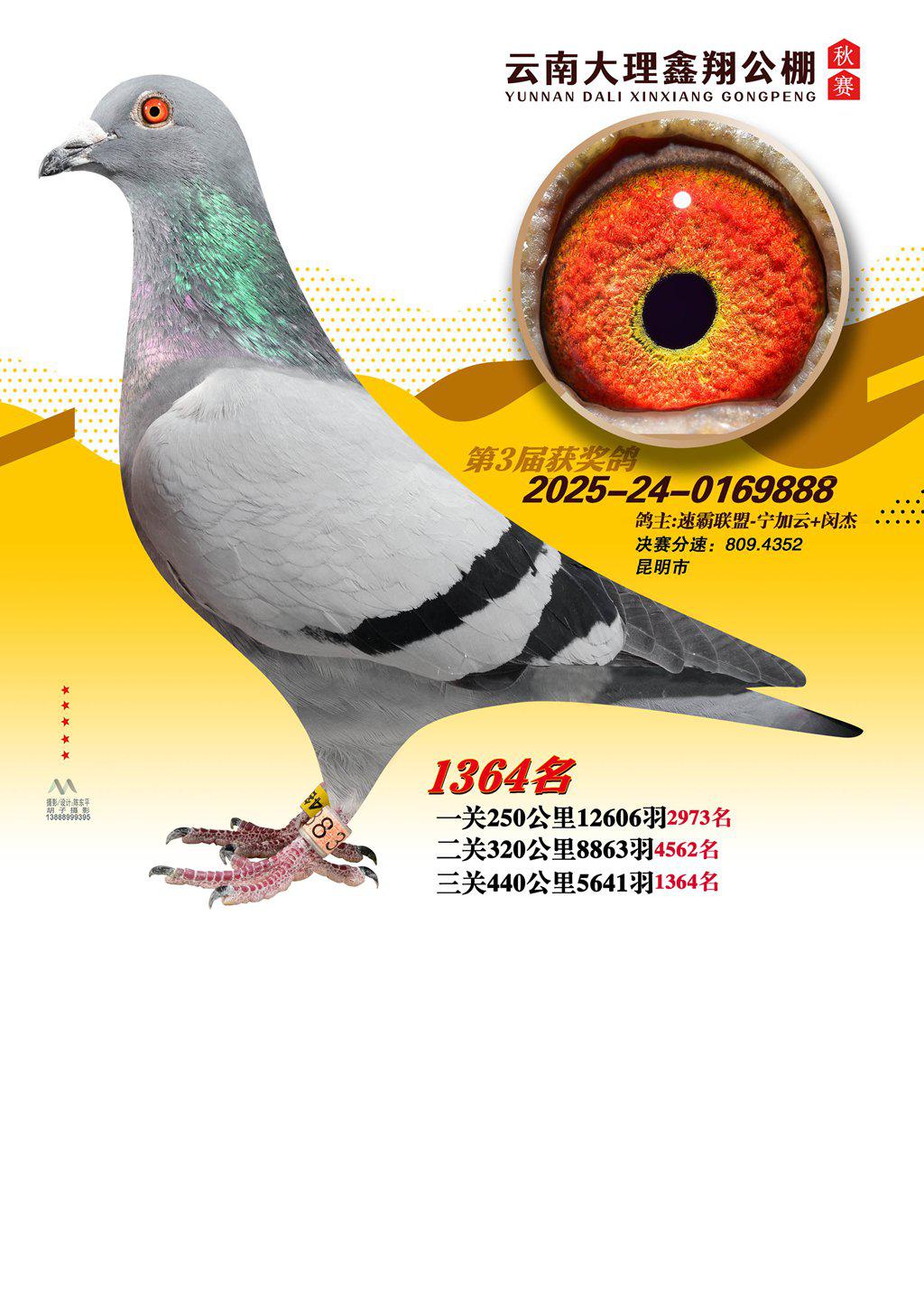 位置:云南大理鑫翔公棚2025获奖鸽展示\1364名