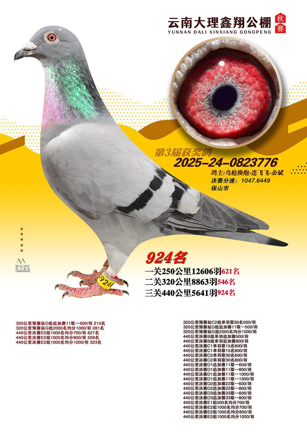 位置:云南大理鑫翔公棚2025获奖鸽展示\924名