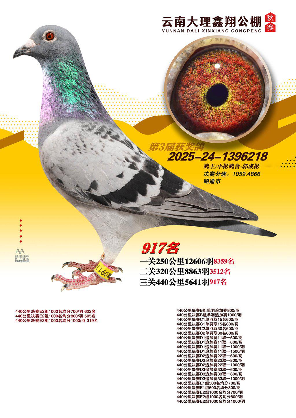 位置:云南大理鑫翔公棚2025获奖鸽展示\917名