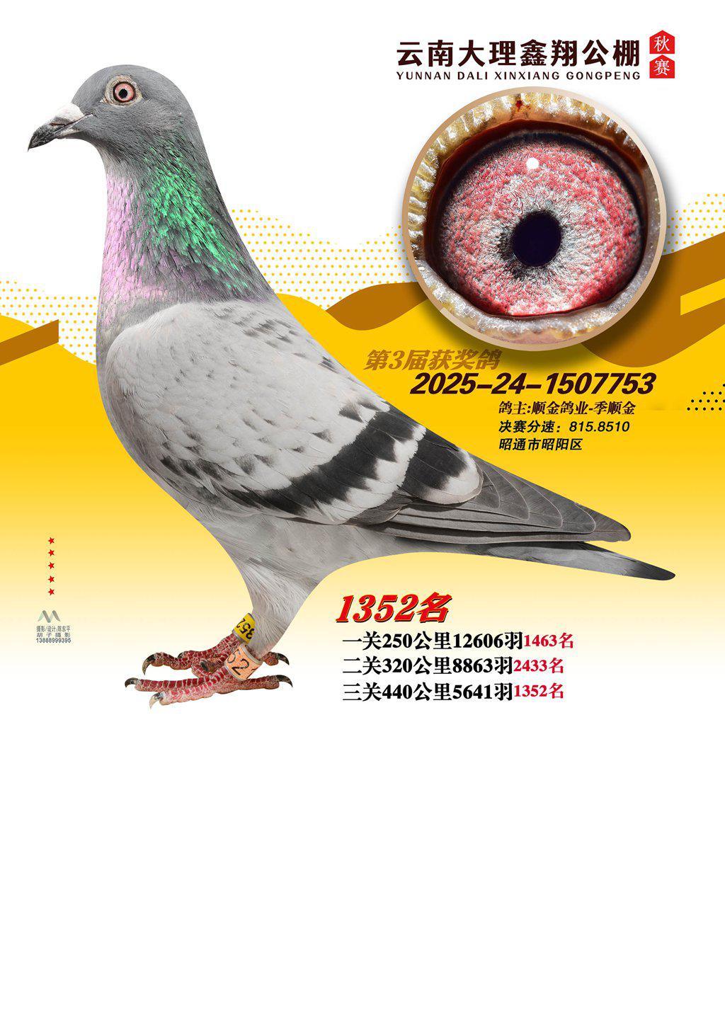 位置:云南大理鑫翔公棚2025获奖鸽展示\1352名