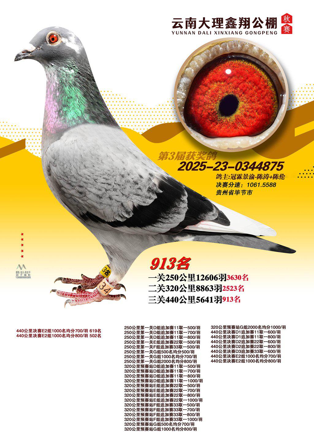 位置:云南大理鑫翔公棚2025获奖鸽展示\913名