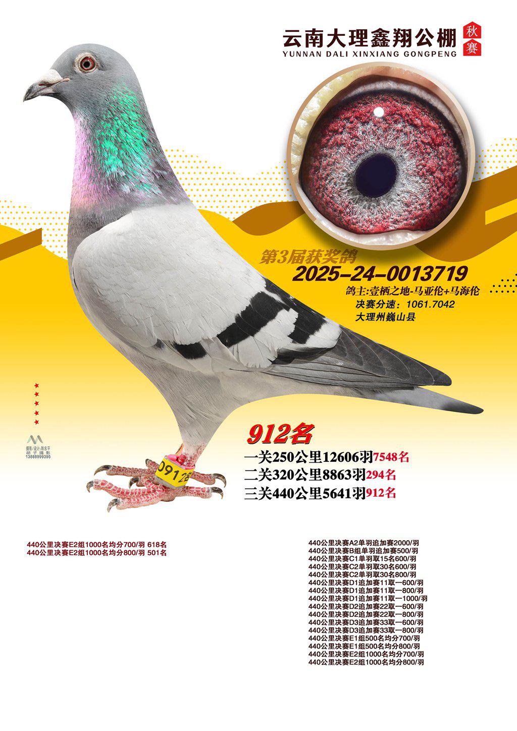位置:云南大理鑫翔公棚2025获奖鸽展示\912名