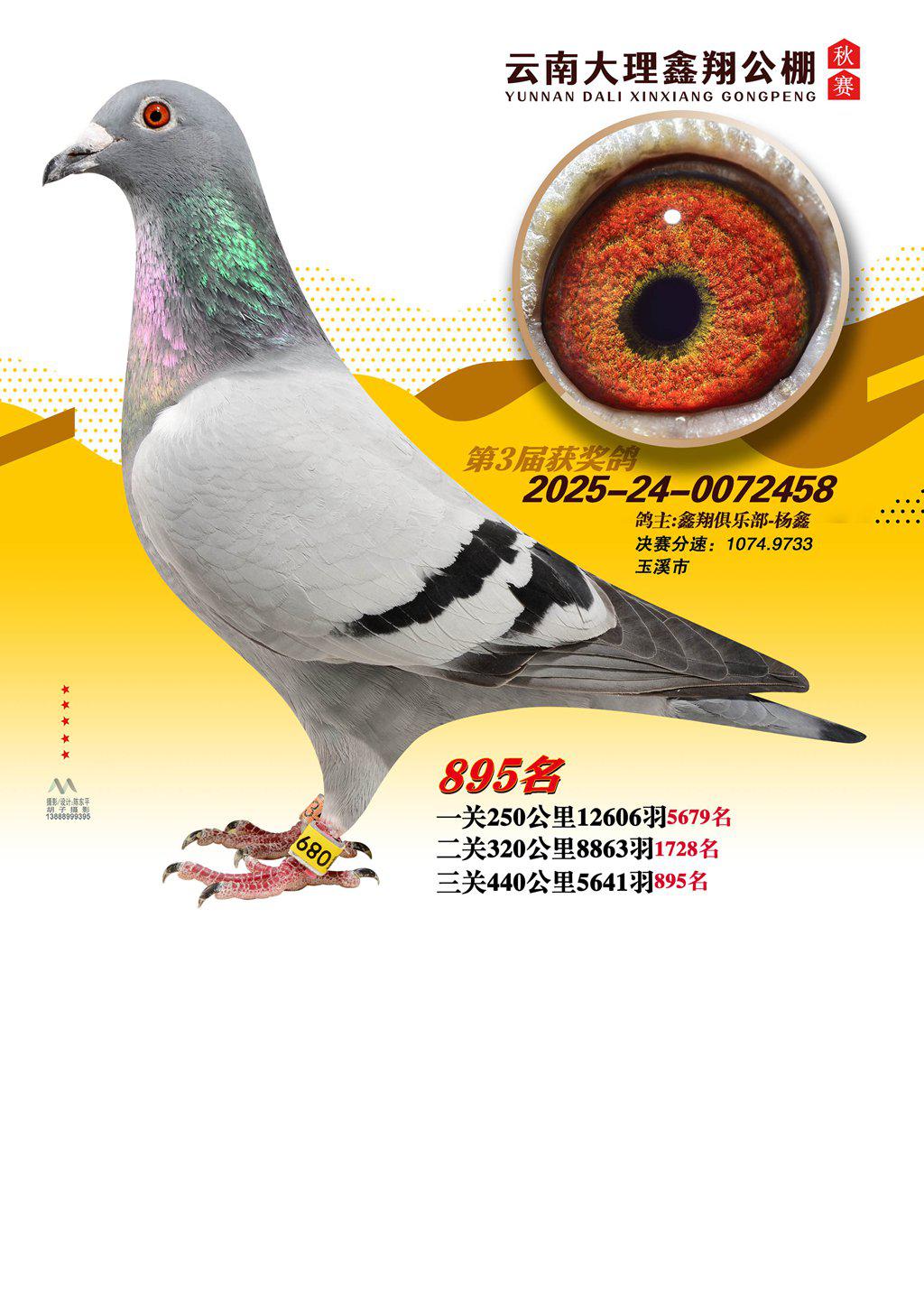 位置:云南大理鑫翔公棚2025获奖鸽展示\895名
