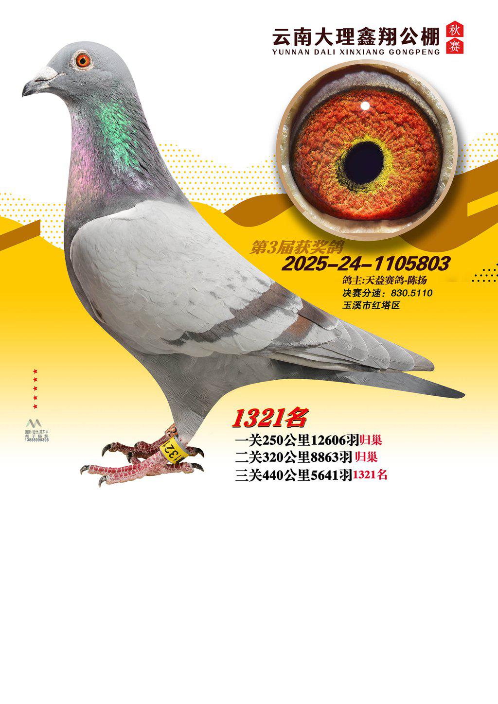 位置:云南大理鑫翔公棚2025获奖鸽展示\1321名