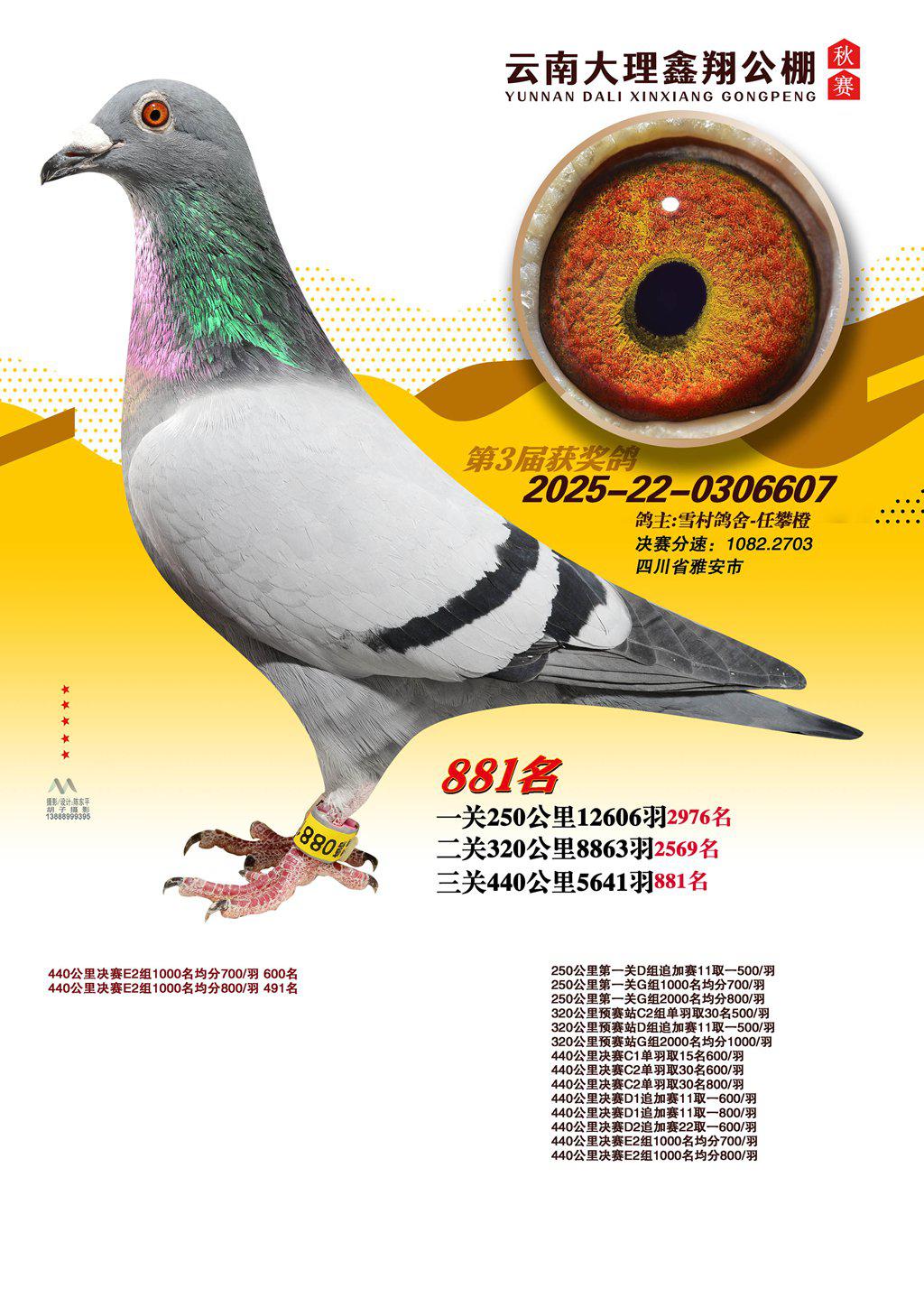 位置:云南大理鑫翔公棚2025获奖鸽展示\881名