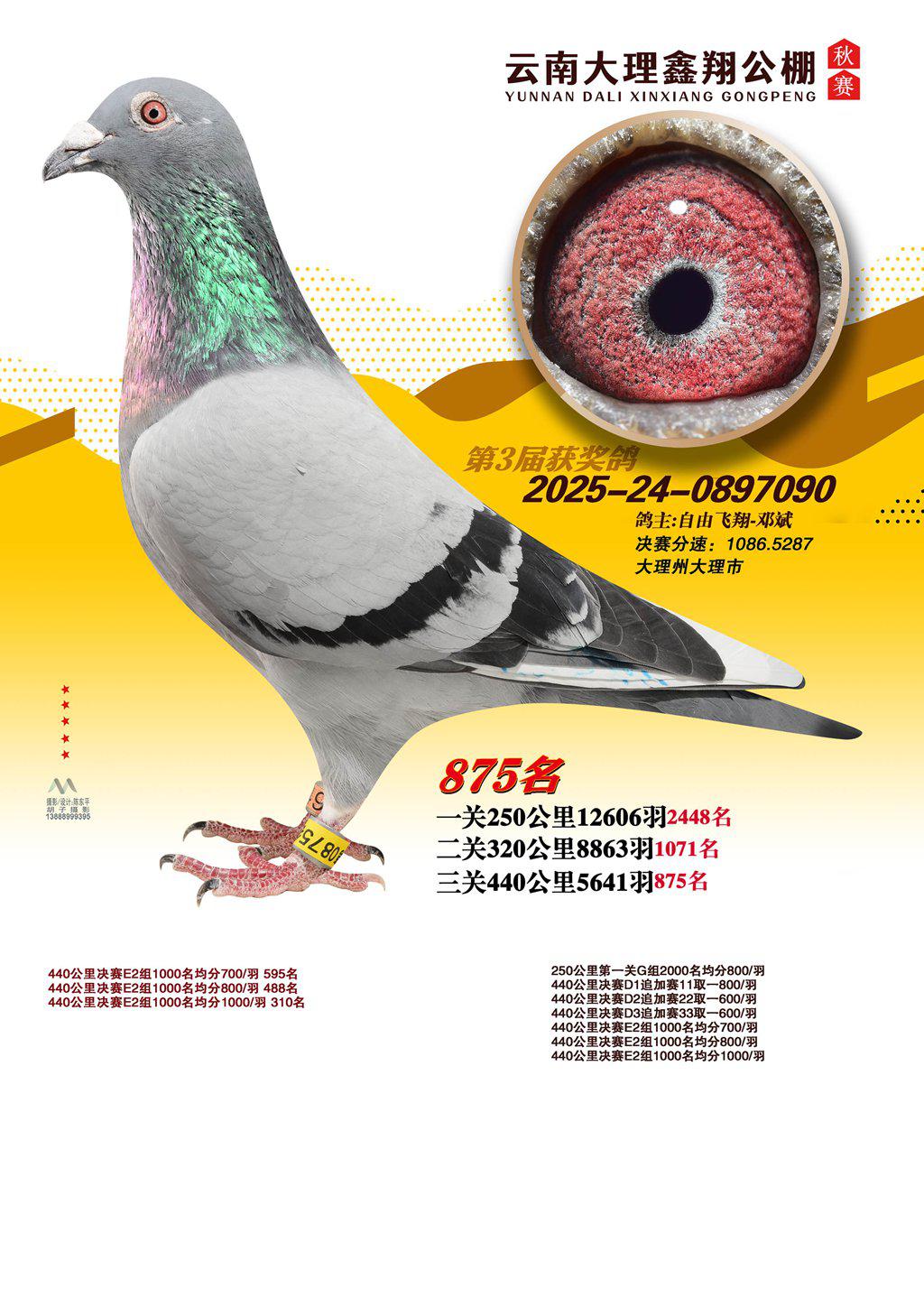 位置:云南大理鑫翔公棚2025获奖鸽展示\875名