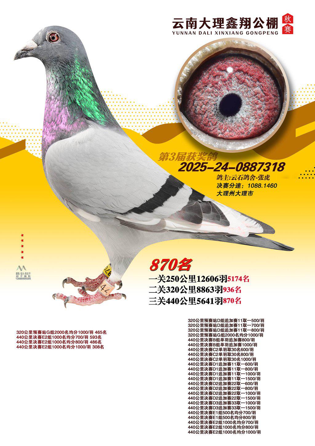位置:云南大理鑫翔公棚2025获奖鸽展示\870名