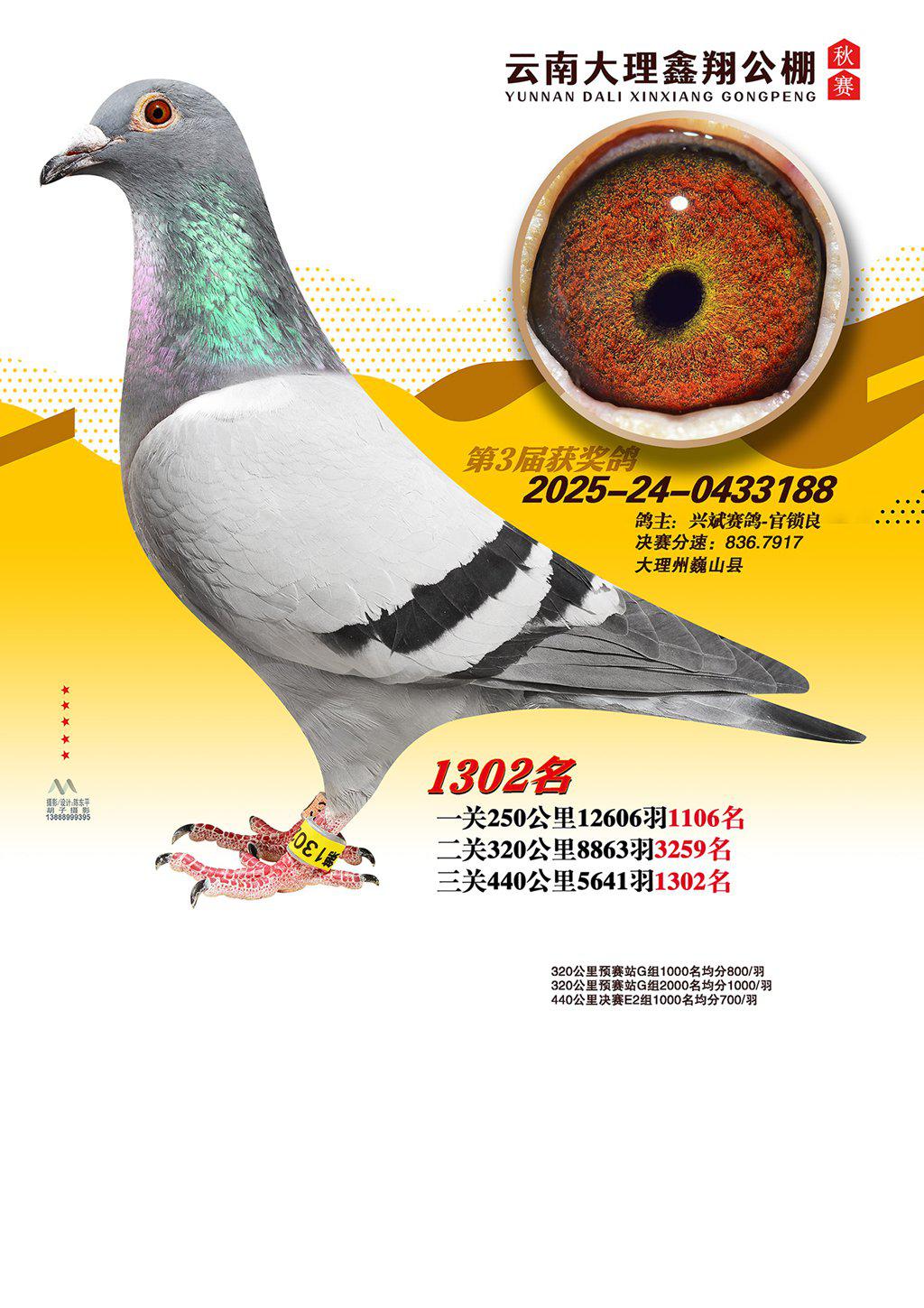 位置:云南大理鑫翔公棚2025获奖鸽展示\1302名