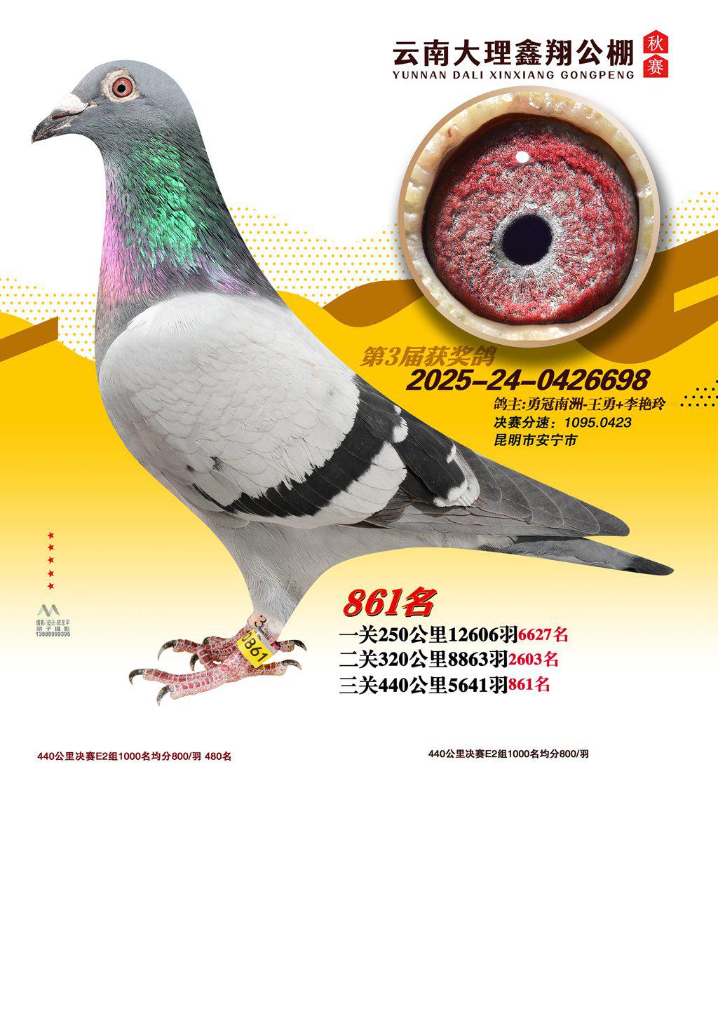 位置:云南大理鑫翔公棚2025获奖鸽展示\861名