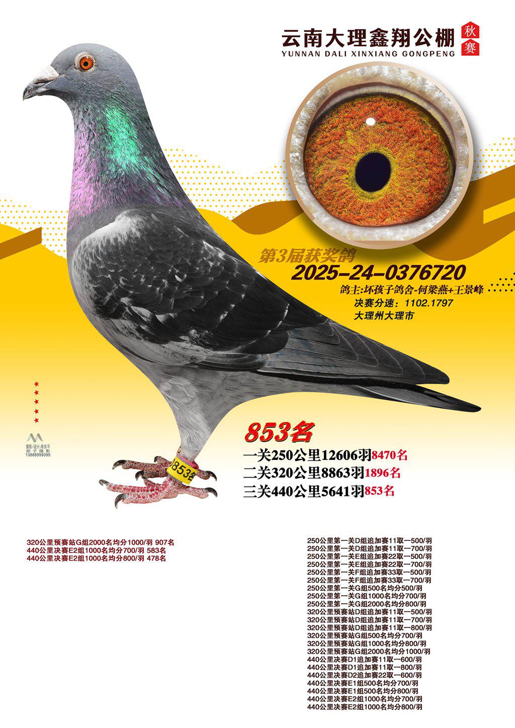 位置:云南大理鑫翔公棚2025获奖鸽展示\853名