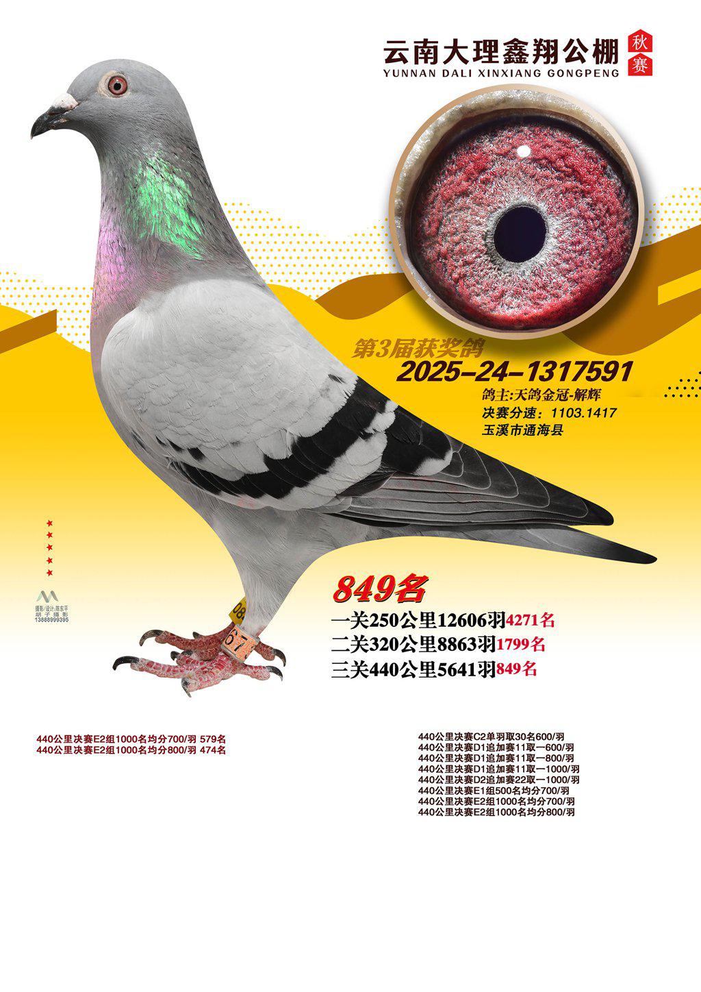 位置:云南大理鑫翔公棚2025获奖鸽展示\849名