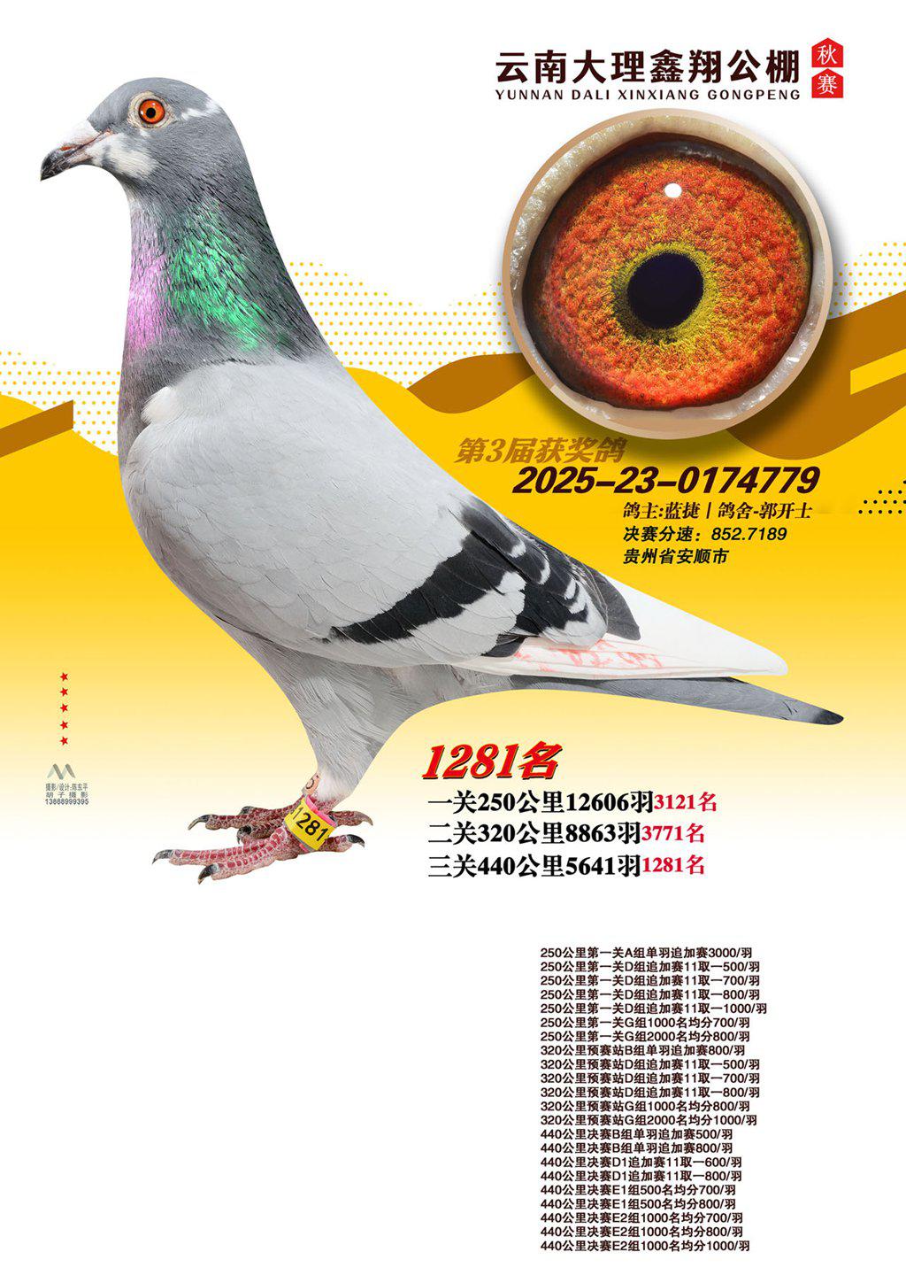 位置:云南大理鑫翔公棚2025获奖鸽展示\1281名