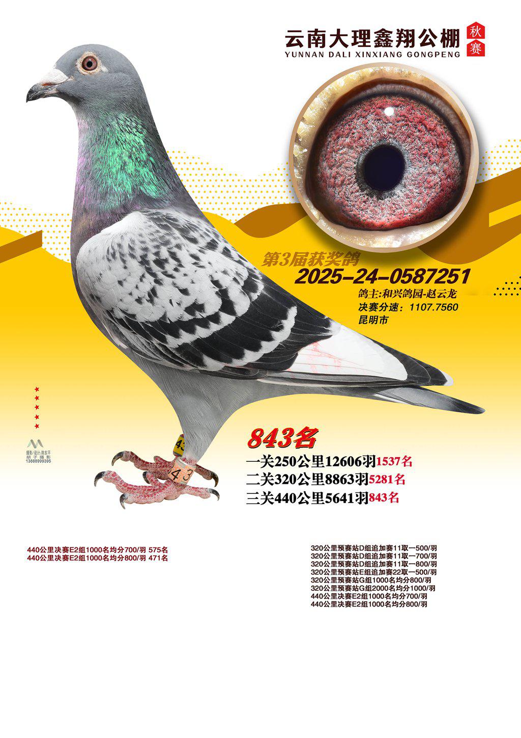 位置:云南大理鑫翔公棚2025获奖鸽展示\843名