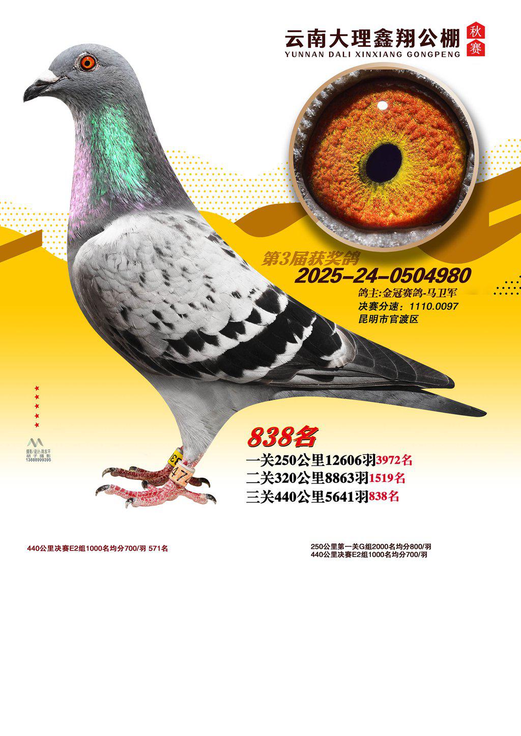 位置:云南大理鑫翔公棚2025获奖鸽展示\838名