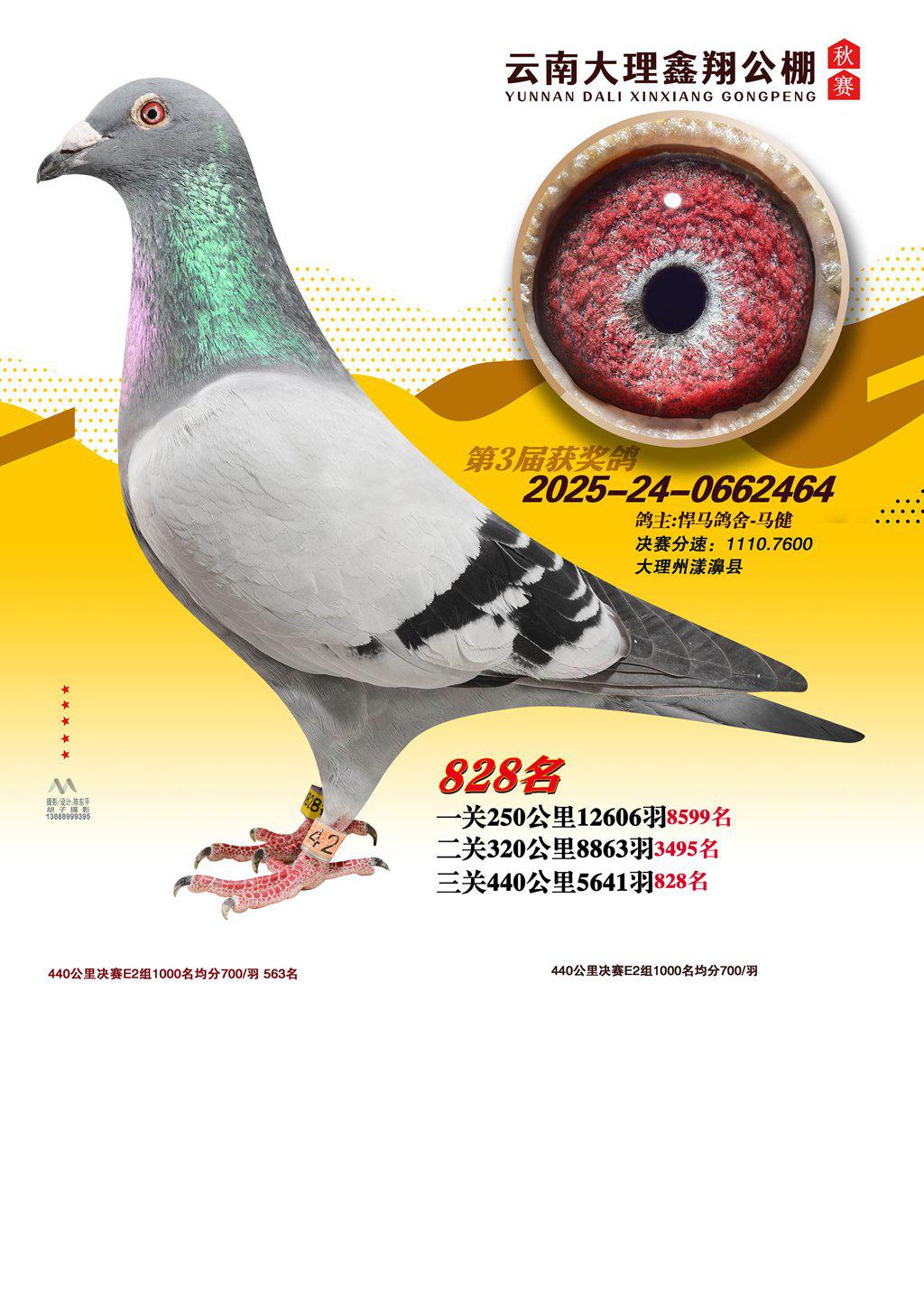 位置:云南大理鑫翔公棚2025获奖鸽展示\828名