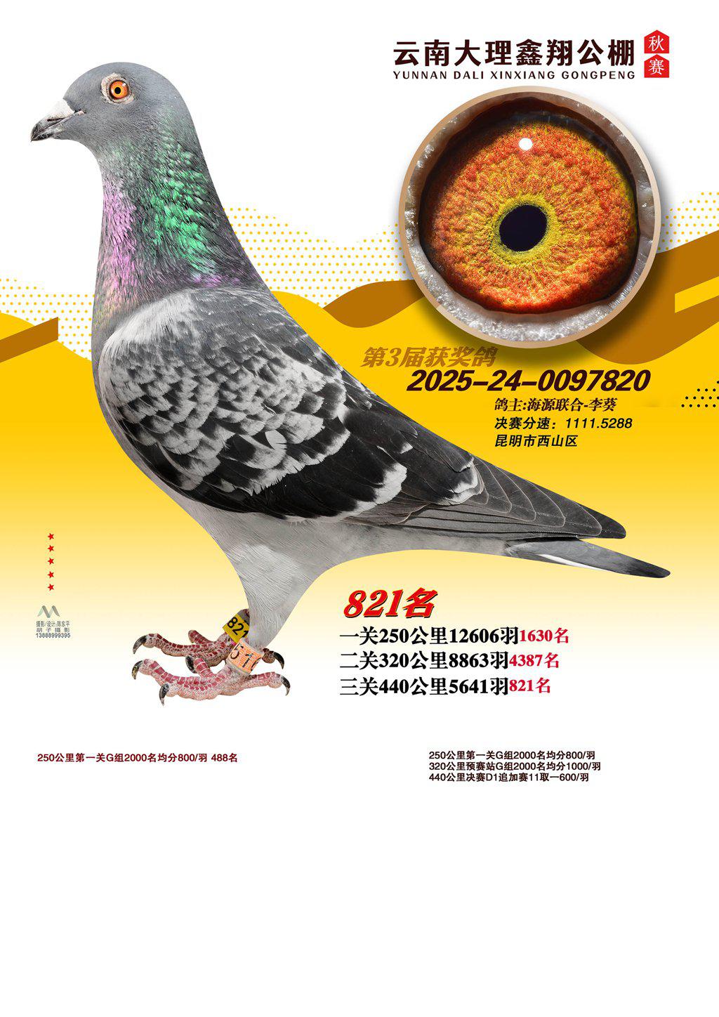 位置:云南大理鑫翔公棚2025获奖鸽展示\821名