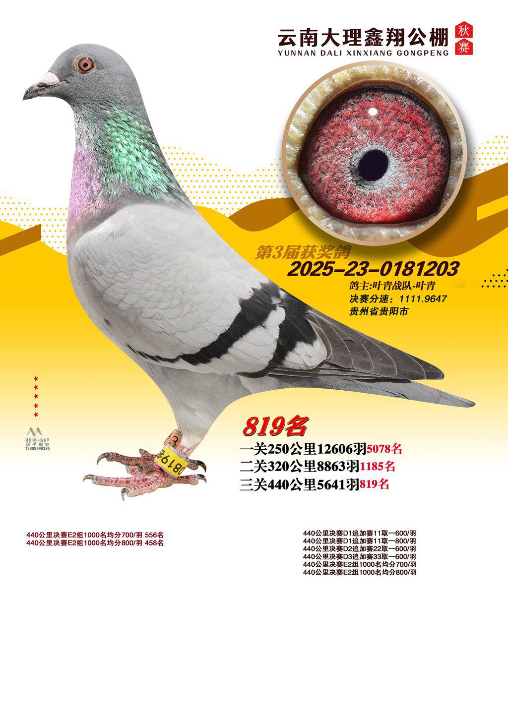 位置:云南大理鑫翔公棚2025获奖鸽展示\819名