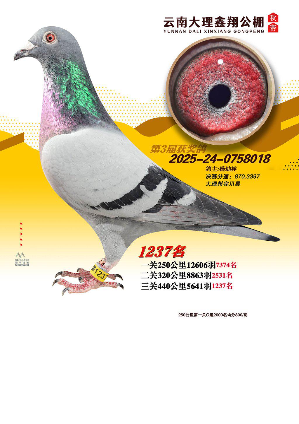 位置:云南大理鑫翔公棚2025获奖鸽展示\1237名