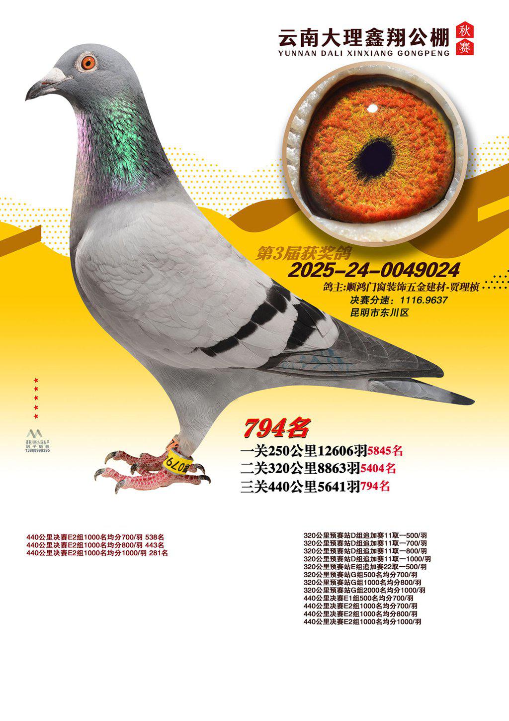 位置:云南大理鑫翔公棚2025获奖鸽展示\794名